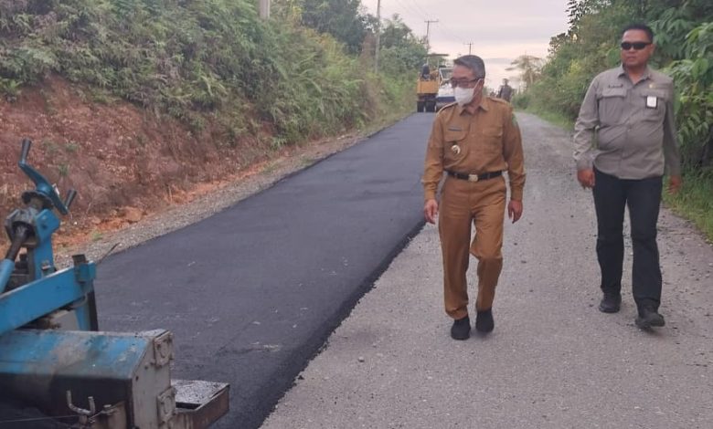 “Untuk progres pekerjaannya sekarang sekitar 1,6 kilometer dari total 3,7 kilometer yang akan dikerjakan. Sedangkan untuk ketebalan aspalnya sekitar 4 sentimeter,” jelas pengawas pekerjaan kepada Bupati.