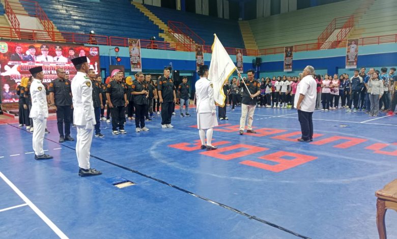 Selain pelantikan pengurus, agenda itu dirangkai dengan Pembukaan Turnamen Bupati Cup Open Volly Ball Tahun 2025.